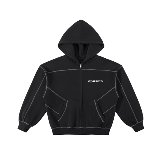Contrast-Stitched Boxy Fleece Zip Hoodie